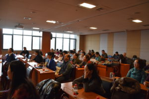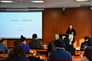 1月10日上午9:00,pg游戏电子模拟器2018-2019学年第一学期期末大会在西校区国际大厦317室召开。常务副院长蔡鸿,副院长彭萍、仵胜奇,院长助理廖鸿婧,办公室主任匡琳琳,以及包括外籍教师在内的教职员工共52 人参加此次大会。大会特别邀请了学校教务处处长、学校教学督导专家李莉文出席。大会共有三项内容: 李莉文传达教育部关于本科教育系列文件精神; 蔡鸿做本学期工作总结; 学院对本学期做出突出成绩的老师进行表彰。大会由廖鸿婧主持。