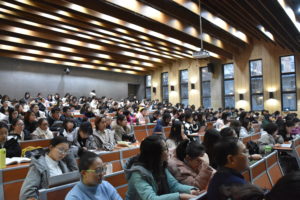 为认真贯彻落实新时代全国高等学校本科教育工作会议精神,对标刚刚结束的学校本科教学工作会议要求,提升英语双学位/双专业本科生的学习能力和学习水平,帮助学生做好即将开始的下学期英语双学位/双专业的选课工作,在学校教务处统一领导和支持下,pg游戏电子官网于12月5日下午4:30在东校园逸夫楼第一阶梯教室组织召开了全校英语双学位/双专业学生培养方案宣讲会。此次宣讲会共有来自国际商学院、国际新闻与传播学院、国际关系学院、中国语言文学学院、信息科学技术学院、法学院等六个学院的300多名学生参加。pg游戏电子官网常务副院长蔡鸿、副院长仵胜奇,院长助理廖鸿婧及学院教学办公室的庄双和窦茹苑老师参加了本次宣讲会。此次会议由学院办公室主任匡琳琳老师主持。