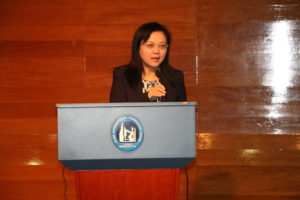 接着教育部高等学校大学外语教学指导委员会秘书长王海啸教授致辞。王海啸教授首先对亚洲ESP学会首届年会暨全国第六届专门用途英语研讨会的开幕表示热烈祝贺。接着王教授分析了几十年来随着社会的发展学界和社会各界对ESP的理解和重视程度的变化。在教育部指导文件中,1999年颁布的《大学英语教学大纲》中就体现了对ESP教学的意识,随着教学实践和研究的进一步发展,2017年拟定但尚未颁布的《大学英语教学指南》体现出对ESP教学的重视。他指出,《大学英语教学指南》反映了ESP的核心价值,所提倡的以需求为导向的原则无论在理论上还是实践上,都凸显了ESP的重要性。同时指出这对ESP教学和科研提出了更多要求,我们需要多方努力来满足时代和社会的新需求和新发展。
