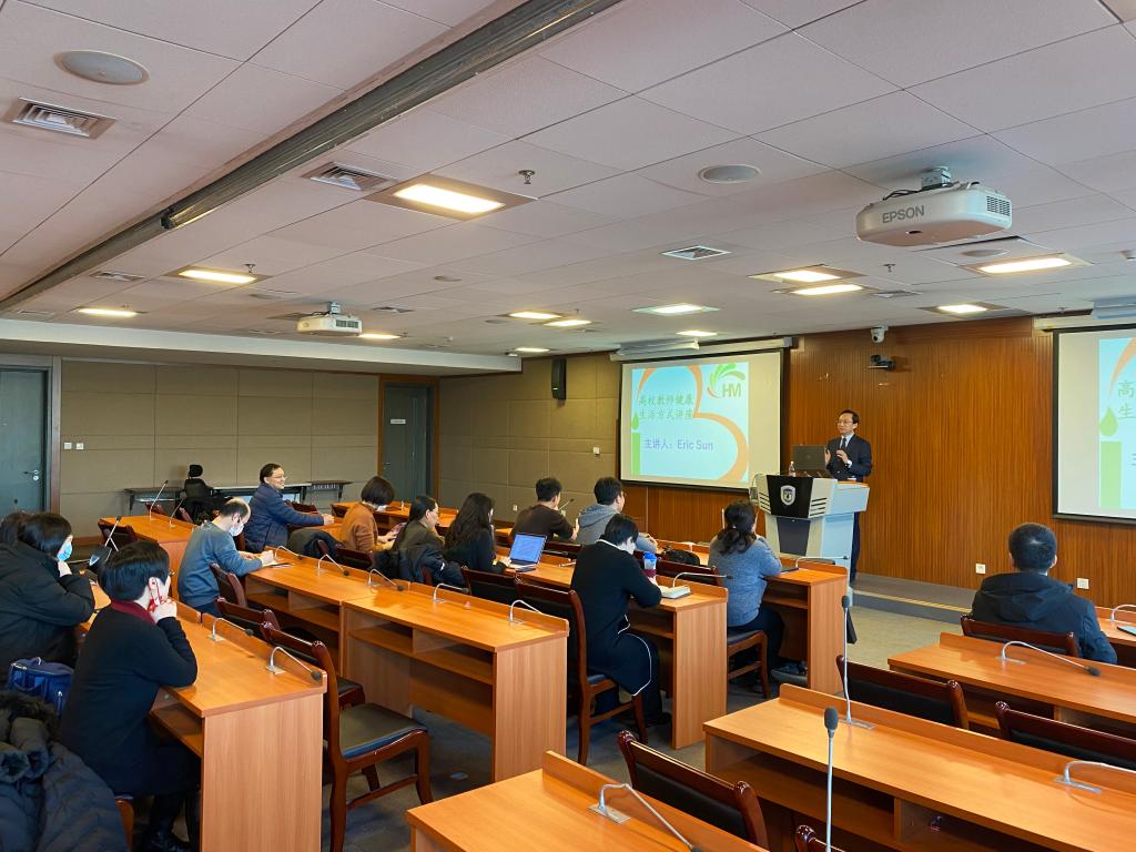 为进一步倡导高校教师健康生活方式,提升学院凝聚力,12月27日下午pg游戏电子模拟器工会特邀美国健康科学博士、美国龙美国际健康管理有限公司总裁、美中健康促进协会副会长孙立国博士为专英学院教职员工举行了一场别开生面的健康生活方式讲座。