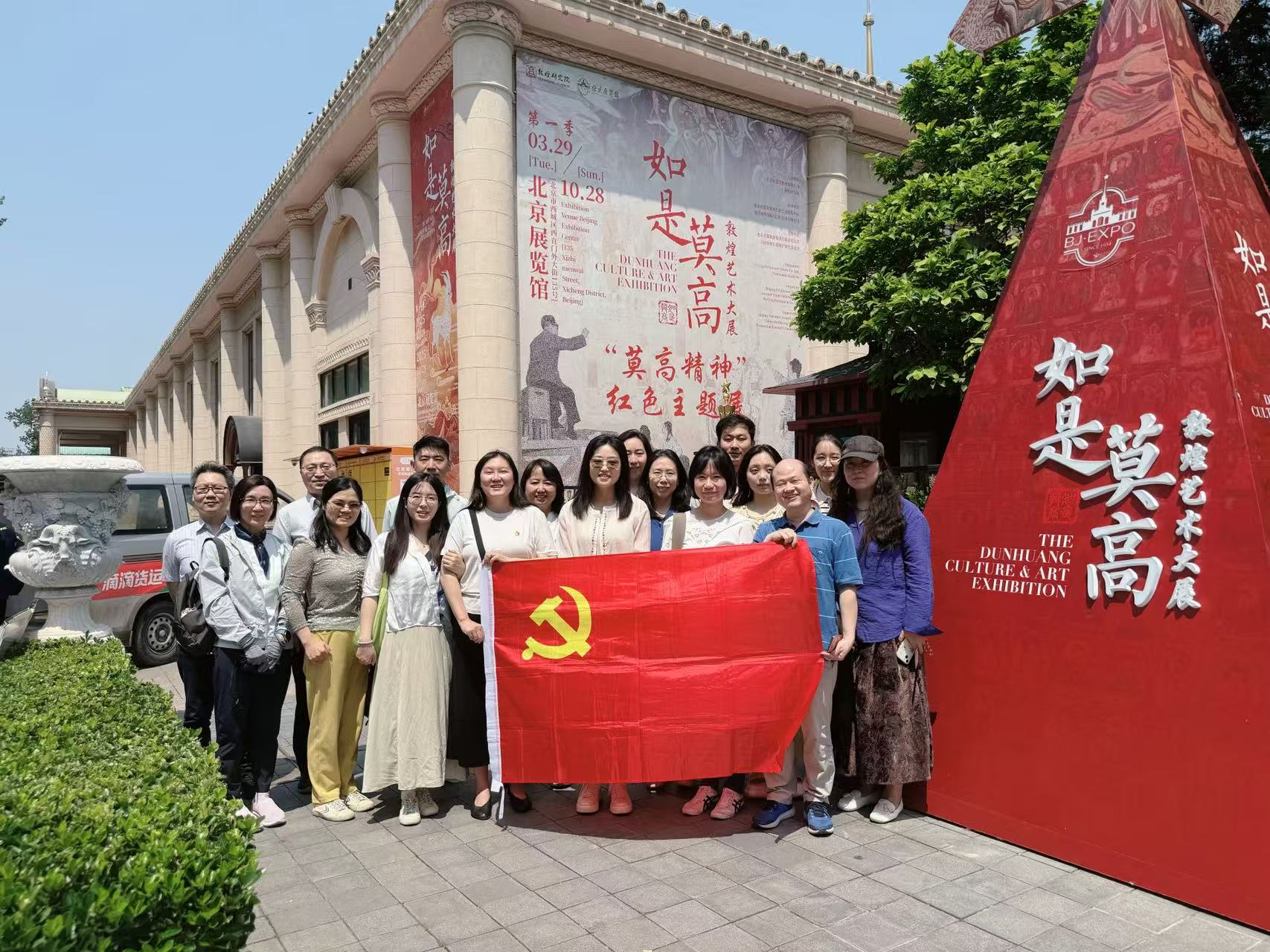 为深入贯彻落实习近平文化思想,丰富主题党日活动形式,强化党支部建设,推动中华优秀传统文化的传承与发展,5月28日下午,pg游戏电子模拟器教师党支部与学生党支部联合开展主题党日活动,共同赴北京展览馆参观“莫高精神”红色主题展与“如是莫高”敦煌艺术大展,此次活动既是一次文化传播之旅,也是一场深刻的精神洗礼。
