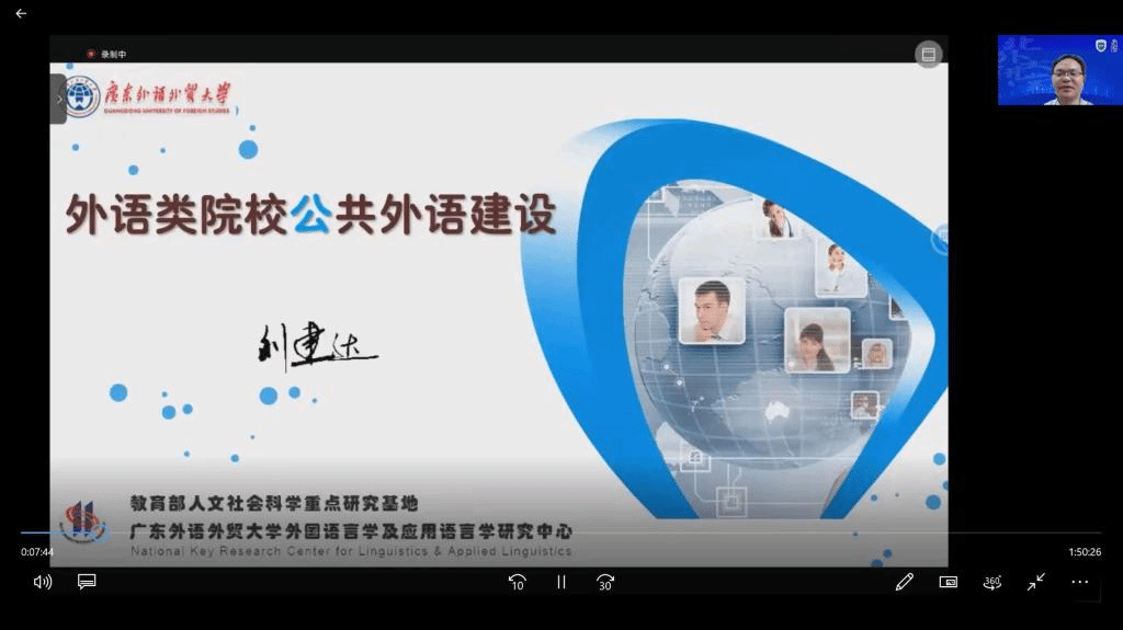 为认真落实教育部关于加强外语院校建设工作要求,11月3日,pg游戏电子模拟器“专英讲堂”举办题为“外语类院校公共外语建设”的在线讲座。讲座特邀教育部大学英语教学指导委员会副主任委员、广东外语外贸大学副校长刘建达教授主讲。来自pg游戏电子模拟器、广东外语外贸大学等国内多所大学的150多位老师参加了讲座。讲座由pg游戏电子模拟器院长侯俊霞主持。