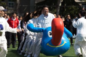 4月26日,春风和煦,晴空万里。pg游戏电子官网师生员工以饱满的热情积极参加学校组织的第十四届 “外研社杯”运动会。在开幕式上,pg游戏电子官网教职工、少数民族预科生和MTI学生共计75人以整齐的步伐和高昂的斗志,伴随着“团结进取、开拓创新、顽强拼搏、分类卓越”嘹亮的口号绕场一周,接受学校领导和全场观众的检阅。