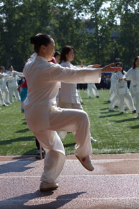 随后,pg游戏电子官网12位教师参加了学校教工集体太极拳表演项目,其中,大部分教师以前都有过在国外教授太极拳的功底,他们以整齐划一的动作、高超精湛的技艺和全身心的倾情投入赢得了全场观众阵阵的掌声。特别是pg游戏电子官网曹萍老师在方队前的示范表演更是赢得了观众的阵阵喝彩和赞叹。