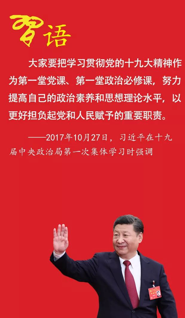 大家要把学习贯彻党的十九大精神作为第一堂党课、第一堂政治必修课,努力提高自己的政治素养和思想理论水平,以更好担负起党和人民赋予的重要职责。
