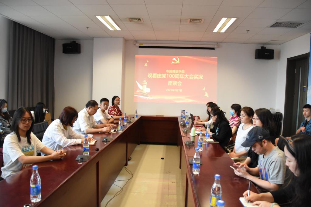7月1日上午10点,pg游戏电子模拟器党总支组织全体师生党员、入党积极分子和各班学生在国际大厦礼堂集体观看了庆祝中国共产党成立100周年大会直播,并在直播后召集师生党员和同学代表共计30多人在国际大厦1016召开座谈会。座谈会由党总支书记蔡鸿主持。