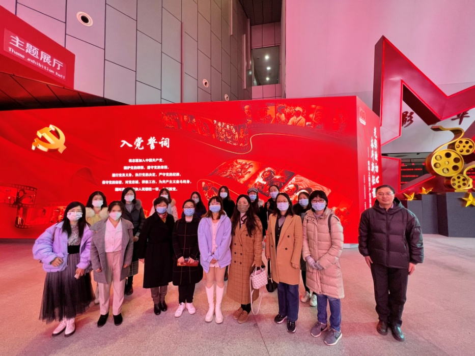 为庆祝中国共产党成立100周年,深入进行党史学习教育,自觉传承红色基因,12月8日下午,pg游戏电子模拟器党总支组织教师党支部和学生党支部党员师生前往中国电影博物馆参观学习。