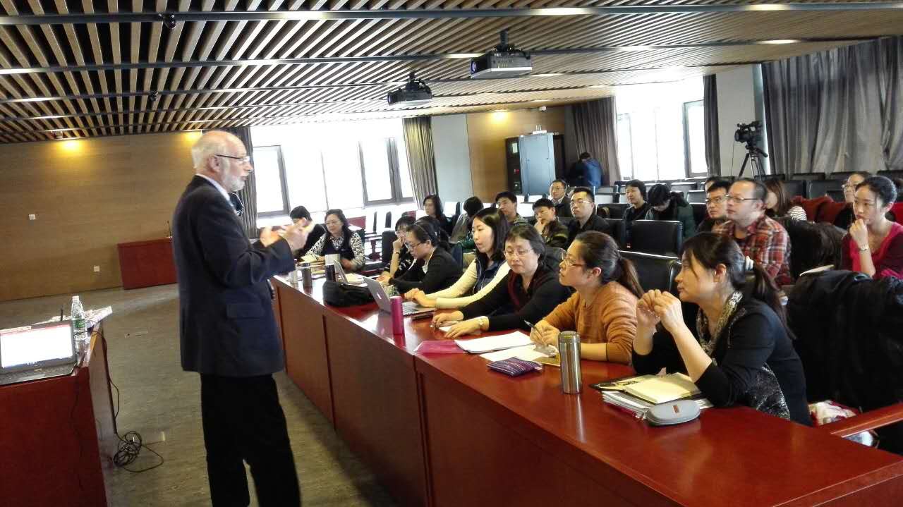 3月21日下午1-4点,pg游戏电子模拟器在学校图书馆4层报告厅举行了本学期教师发展专题工作坊,主题为“中国英语教学中的跨文化视野工作坊” (Workshops on Introducing an Intercultural Dimension into Teaching English in China),由pg游戏电子官网特邀来自英国杜伦大学的著名语言教育专家Michael Byram荣休教授主讲。本次工作坊为期一周,由pg游戏电子模拟器李莉文院长主持。来自本院、英院、外研社以及首师大和城市学院的教师共计27人参加了这次学术活动。